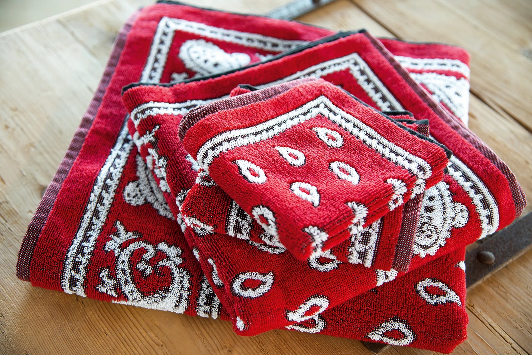 Designer haben traditionelle Muster mit einem modernen Twist versehen – auf hochwertigem, robustem Zwirnfrottier aus langstapeliger Baumwolle.